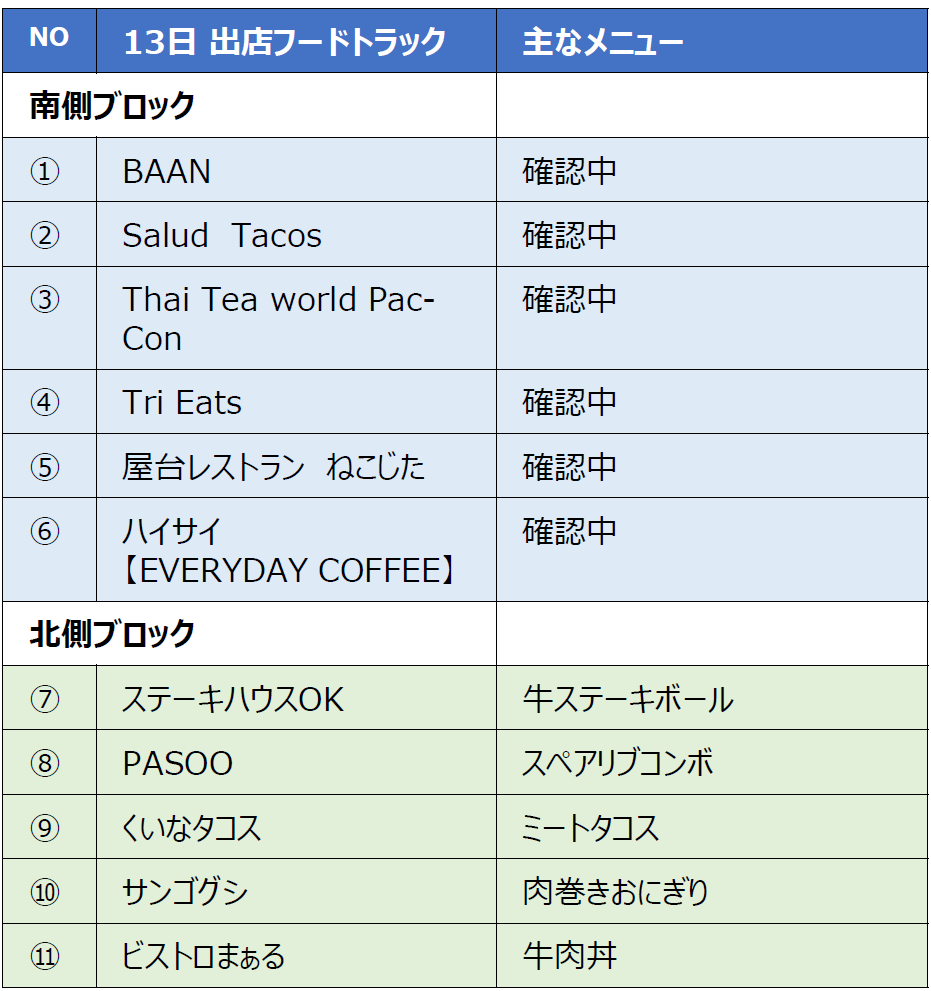 当日のキッチンカー情報
